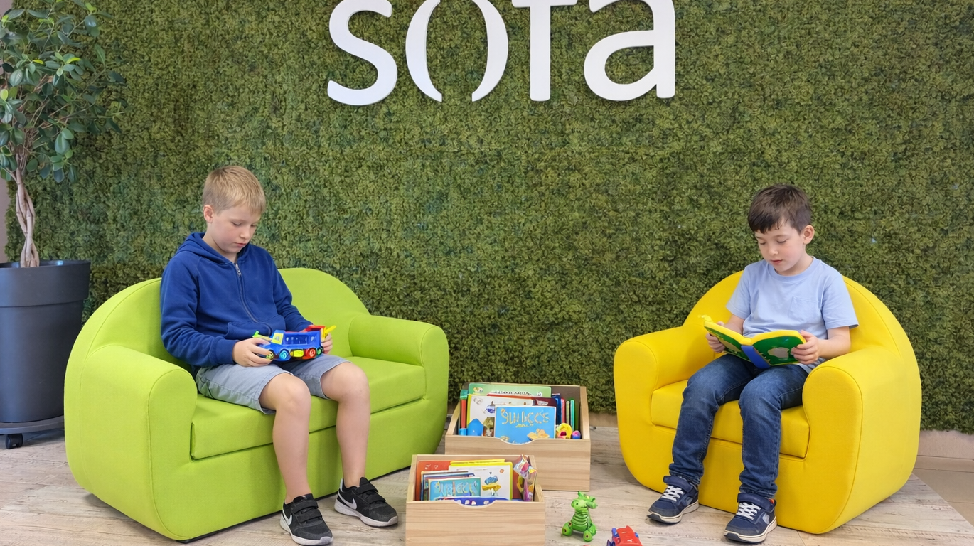 Chez ATELIERS SOFA, nous imaginons aussi les espaces d’attente pour les plus jeunes.